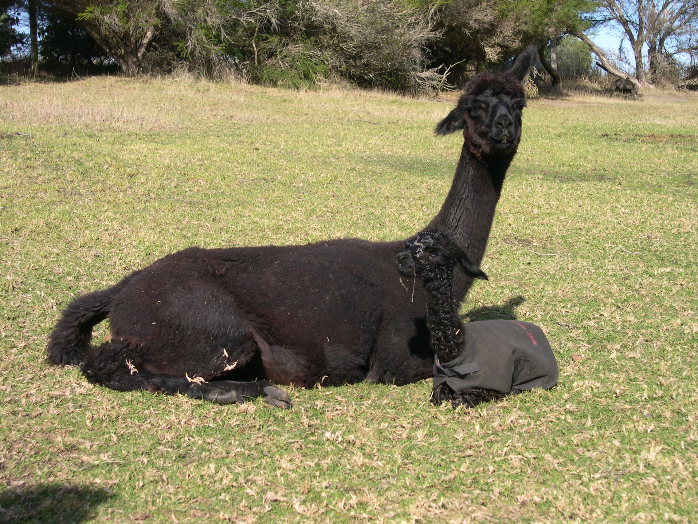 Lou Lou is a 5 year old, solid black female huacaya. While she's not beautiful, she is an excellent mother, and holds a very fine black fleece.